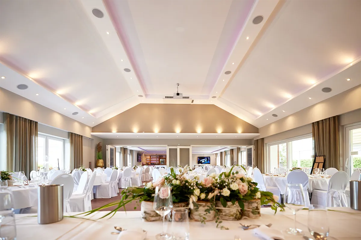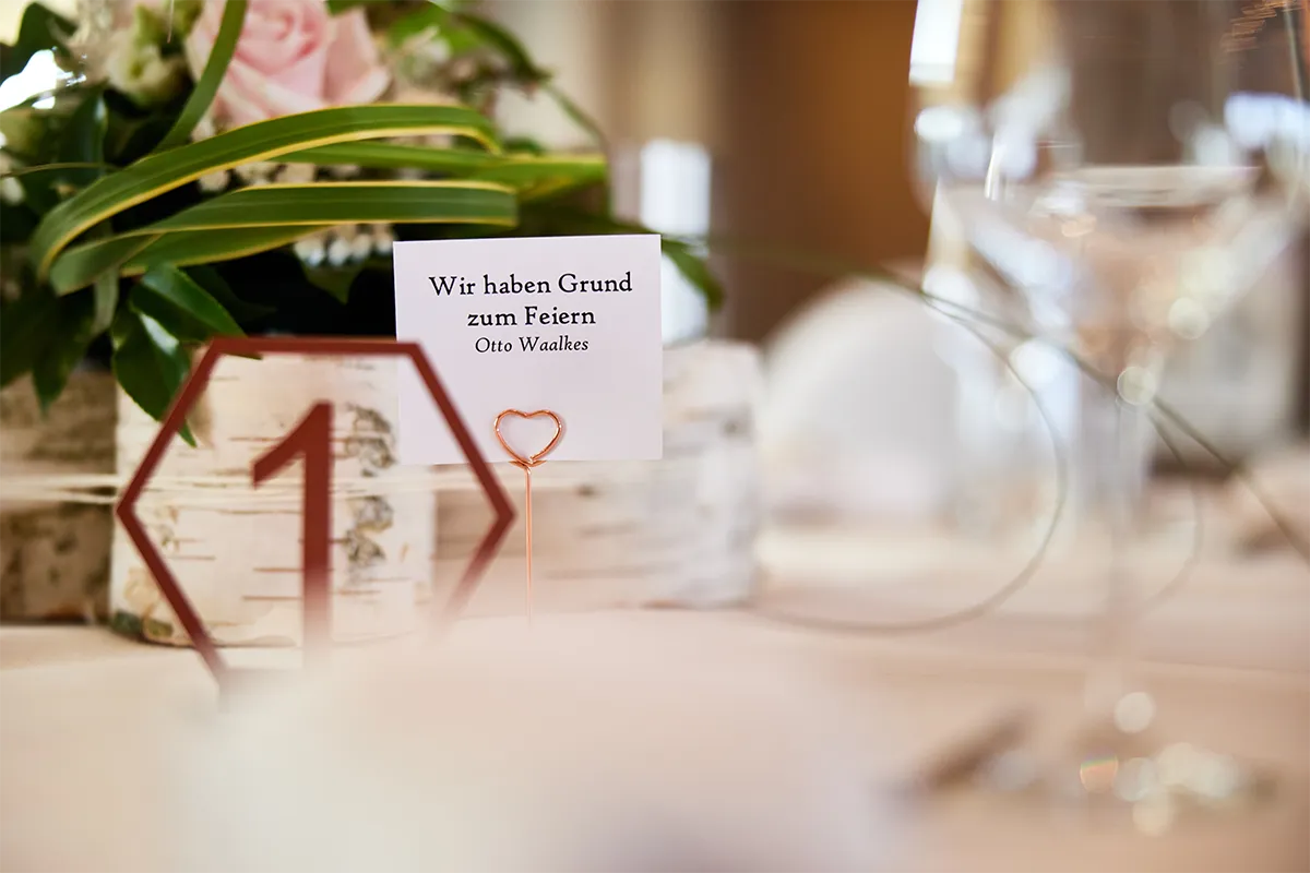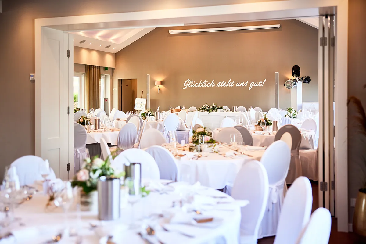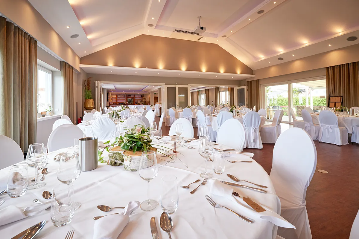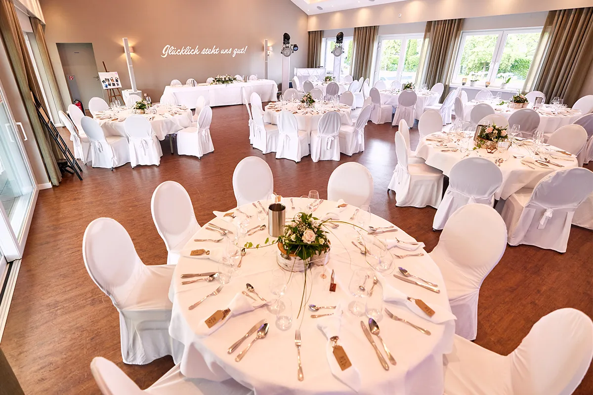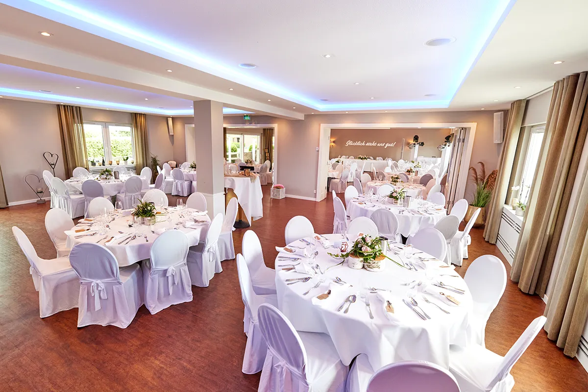 Ihre Traumhochzeit soll ein unvergessliches Ereignis werden, und wir sind hier, um Ihre Wünsche Wirklichkeit werden zu lassen. Unser festlicher Saal bietet Platz für bis zu 150 Personen und bildet die ideale Kulisse für den schönsten Tag Ihres Lebens. Ganz gleich, ob Sie eine intime Feier im engsten Familienkreis oder eine prachtvolle Hochzeitsgesellschaft planen – bei uns sind Sie genau richtig.